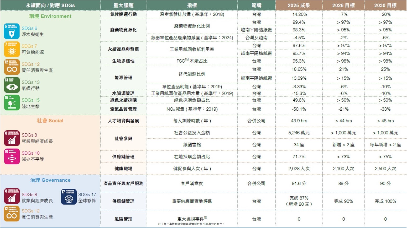ESG目標與績效