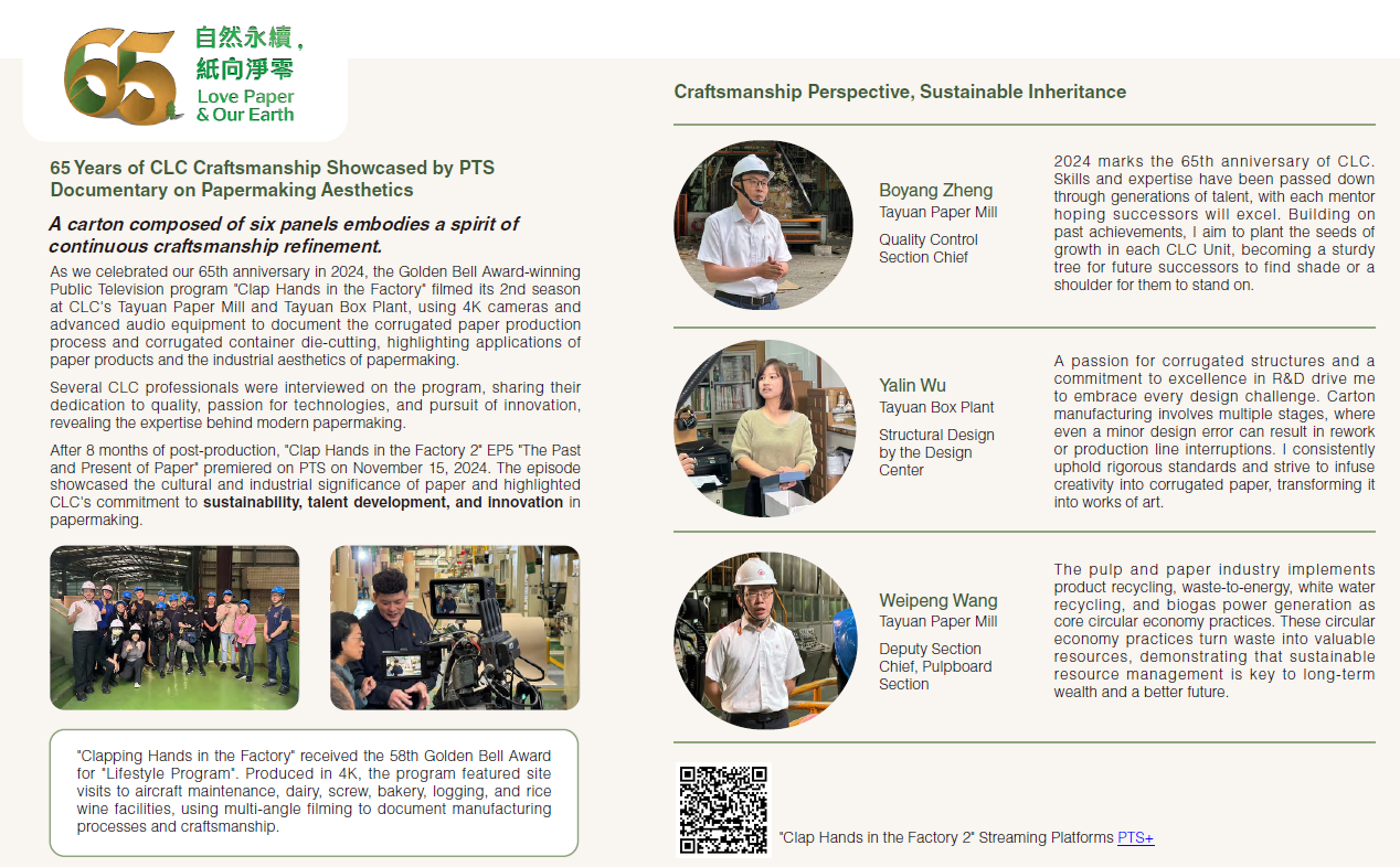 "Looking forward into overseas business deployment and the global trend of sustainable supply chain, we are promoting low-carbon smart paper transformation at full steam. Apart from enhancing the internal carbon reduction synergy through technology and operations, we emphasize the maximization of sustainable influence more. We also focus on developing green leaders that can keep up with the times, building a happy workplace featuring 'sense of honor,' 'sense of responsibility,' and 'sense of achievement' to incentivize and retain talents."