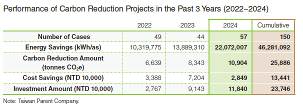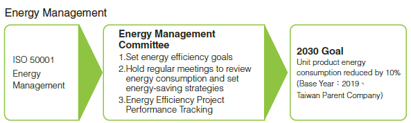 ◆ Taiwan Parent Company targets a 10% reduction in unit product energy consumption (base year: 2019)