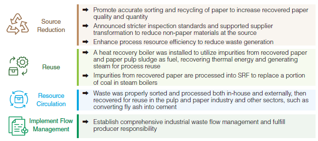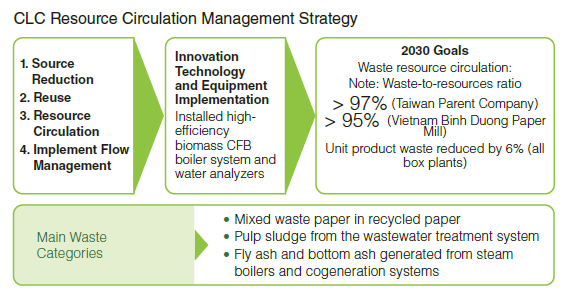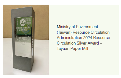 ◆ Waste-to-resource ratio:> 97% (Taiwan Parent Company);> 95% (Vietnam Binh Duong Paper Mill)