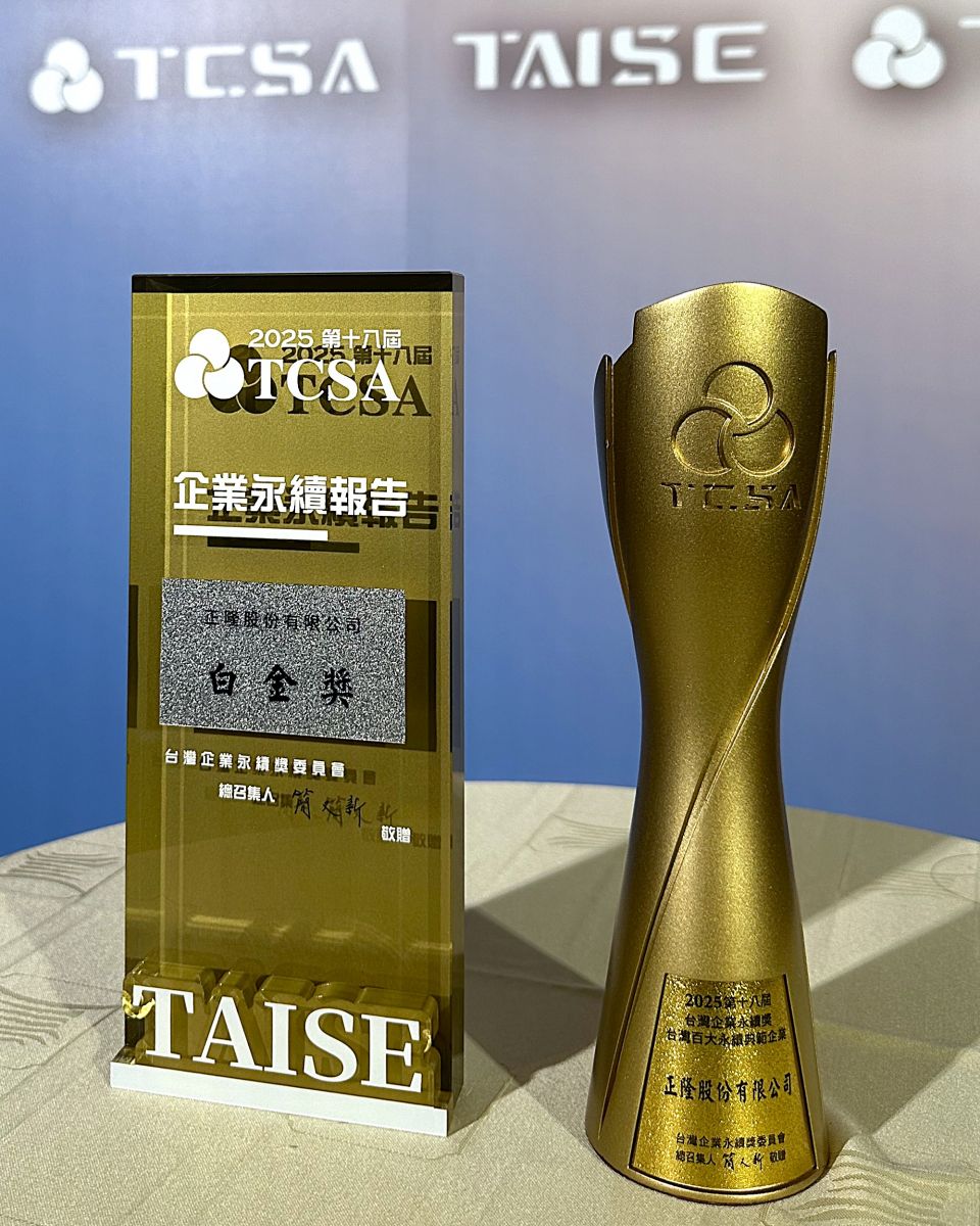 正隆四連霸「台灣企業永續獎TCSA」百大永續典範企業與