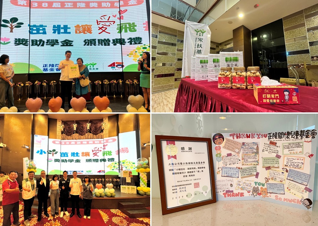 正隆公司視企業社會責任為永續核心,長期透過公益資源投入,建立弱勢兒少支持體系。旗下正隆關懷兒童基金會與家扶基金會於上周六(4/18)於台東市舉辦第38屆「小樹茁壯.讓愛飛揚」寄養兒少獎助學金頒獎典禮。台東縣社會處處長陳淑蘭特別出席,代表縣府肯定正隆與家扶長期以來的公益投入。
